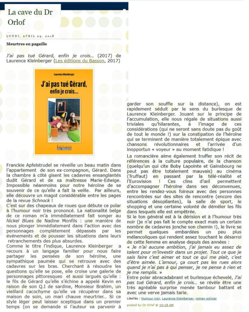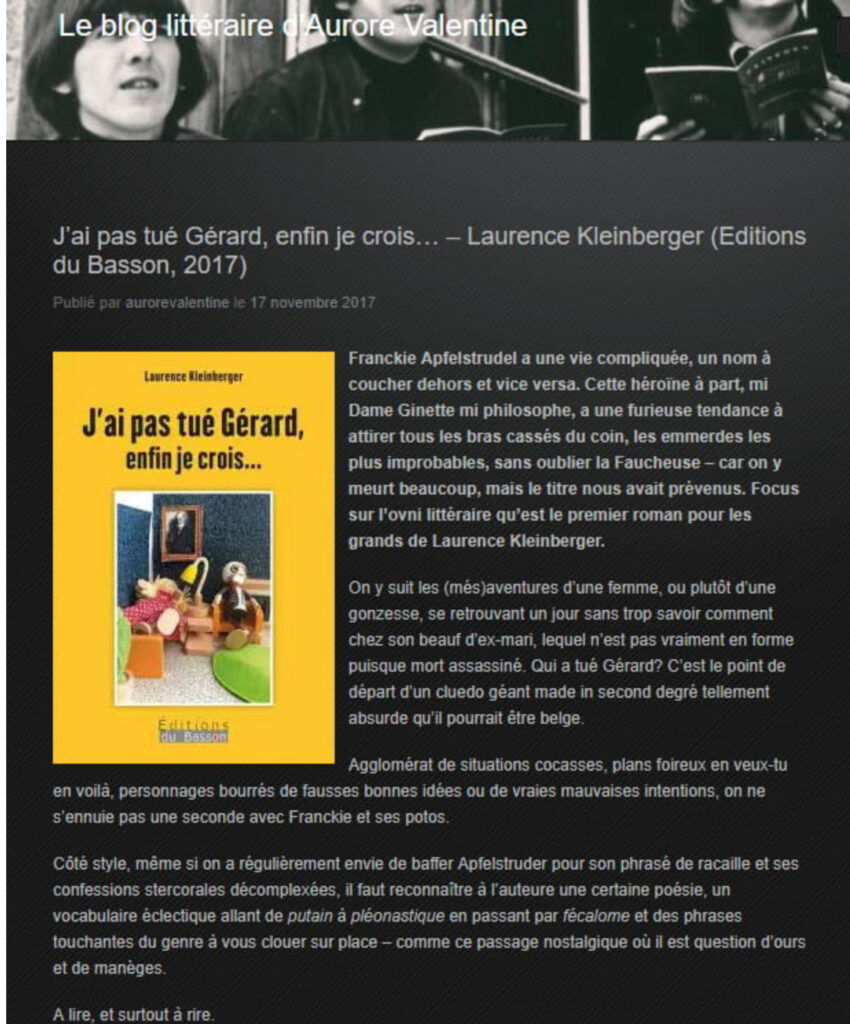 2. Laurence Kleinberger, J’ai pas tué Gérard, enfin je crois…., Ed. du